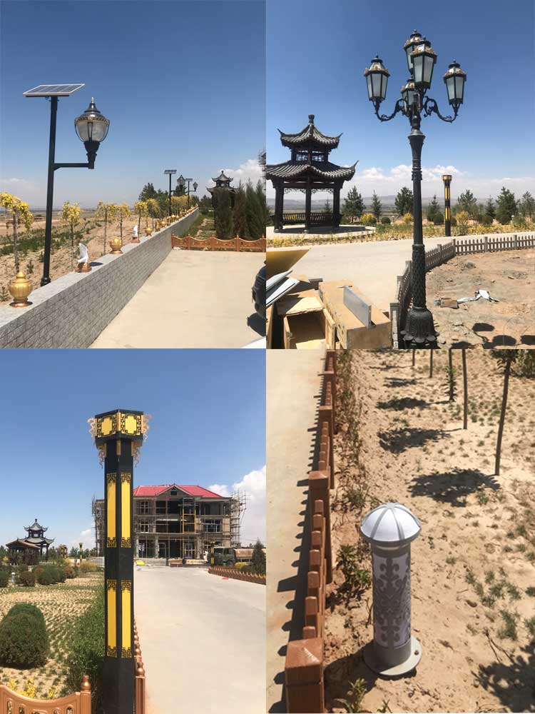 簡(jiǎn)介—— 寧夏吳忠市同心縣景觀燈、庭院燈、草坪燈系列項(xiàng)目,是我公司與2018年5月完成的具有當(dāng)?shù)仫L(fēng)格的特色燈具,我們提供給客戶的這批產(chǎn)品都是都是根據(jù)客戶的需求,安裝公司圖冊(cè)進(jìn)行生產(chǎn)的,每款燈都有特色,全部安裝的是市電庭院燈、景觀燈、草坪燈。