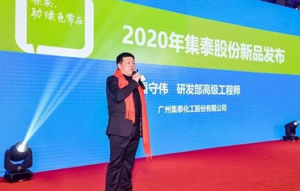 新起點、新品SHOW!2020年1月10日,新年伊始……第11屆“安泰杯”滑雪賽歡迎晚宴暨“集泰”2020新品發布會”,在北京歌華開元大酒店盛大舉行。廣州集泰化工股份有限公司研發部潘守偉高級工程師 介紹2020新品!