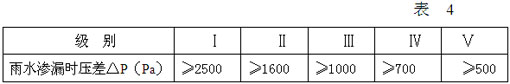 建筑幕墻水密性的分級(jí)值,玻璃采光頂水密性分級(jí)參照表4: