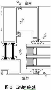 扇料與玻璃扣條形成的空腔處的氣密性較差是斷熱窗存在一個普遍的問題,由于玻璃扣條是在安裝好玻璃后再扣上去的,與扇料的配合難免存在縫隙,而玻璃與扇料間通常采用膠條