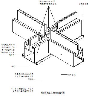橫框與豎框的交接節點是第二個典型節點。最主要的特點是橫框中玻璃槽的