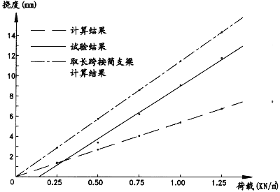 簡支梁計算所得撓度(計算從略);(3)隨著荷載的增大雙跨梁的實測撓度與理論計算撓度偏差越大。