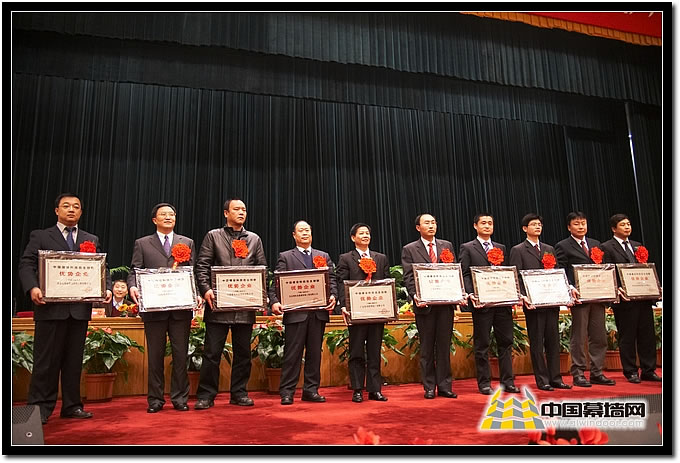 圖十 外墻外保濕類獲獎(jiǎng)企業(yè) 吉林科龍、北京振利等企業(yè)代表上臺(tái)領(lǐng)獎(jiǎng)