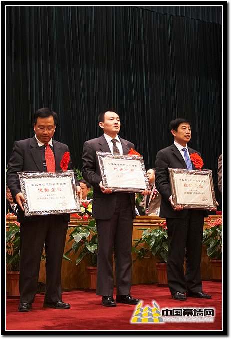 圖十六 建筑幕墻類 獲獎(jiǎng)企業(yè)如深圳金粵、上海美特、上海高新企業(yè)代表上臺(tái)領(lǐng)獎(jiǎng)