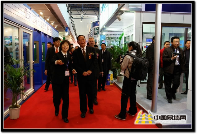 隆重的展會開幕式剛剛結束,在中國建筑金屬結構協會會長杜宗翰、秘書長李建忠、副會長徐文鐸、副秘書長黃圻等中方領導,陪同歐洲門窗協會會長 Mr.Hauk參觀、了解主要參展企業展臺和參展產品。