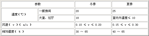 表 3.0.1-2 空氣調節系統室內計算參數