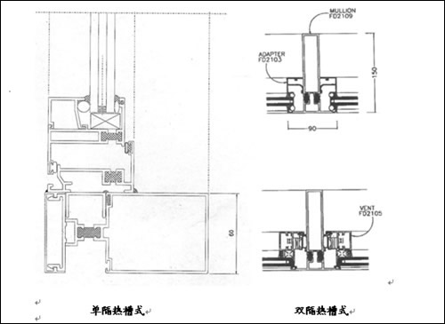 經過長時間的研究,我們發現常用的設計方式有兩種,即單隔熱槽式和雙隔熱槽式。這兩種設計方法應該按照具體的工程力學要求和裝配要求靈活應用。