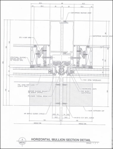 Acrotower中心大廈位于韓國漢城。該建筑位于漢城最為著名的中心商務區內。整個建筑群由一棟48層和一棟64層的高樓組成。對于該建筑群的設計和要求,建筑師要求幕墻用材除能夠承受高風壓載荷外,可視面的寬度不能超過80mm。對于這種近于苛刻的要求,該工程的技術咨詢公司提出了如下圖的AZON隔熱技術方案。經過韓國工程試驗中心的性能校合,該方案能夠滿足工程甲方的設計要求和造價標準。