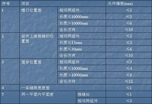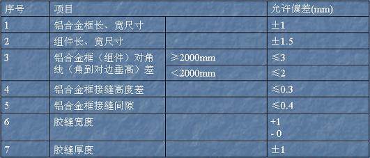 表20 隱框采光頂結構性玻璃裝配組件安裝允許偏差