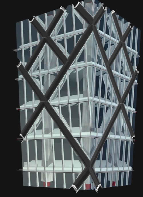 央視新廈由兩個巨大的“Z”形鋼結構交叉纏繞,兩座不同形態的塔樓在三維上構成了奇特的關聯。一片由鋼鐵與玻璃組成的云,中間是一個巨大的洞,穿過洞看到了更多的樓、藍天、太空。央視新廈這座別具一格、標新立異的“Z”形鋼結構建筑,造型獨特、表達新奇,類似一個巨型城市雕塑的作品。展示中央電視臺的嶄新形象,推動中國