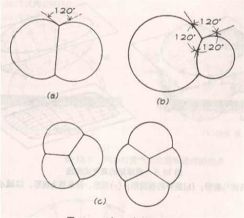 a)、大小相等肥皂泡,(b)大小不等肥皂泡,(c)3-4個肥皂泡。