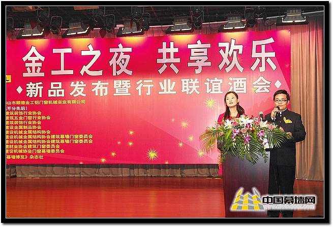 由廣東佛山市順德金工鋁門窗機械實業有限公司主辦、《門窗幕墻博覽》雜志社承辦的“金工之夜 共享歡樂 新品發布暨行業聯誼酒會”于11月15日在上海舉辦,中國金屬結構協會徐文鐸副會長出席了本次聯誼酒會并致詞。出席本次酒會領導、嘉賓包括:鋁門窗幕墻委員會黃圻主任,上海市裝飾裝修行業協會忻國梁常務副會長、劉海韻輪值會長、付華東副會長、潘根林副會長、薛德興副會長、劉勇秘書長,上海市建筑五金門窗行業協會、蘇州建設機械金屬結構協會及建筑幕墻門窗委員會、浙江省建筑裝飾行業協會、浙江省建設金屬制品協會、天津市建材行業建筑門窗業委會、河北省建設機械協會門窗幕墻委員會、四川省門窗協會、重慶市建筑節能協會、福建省門窗協會領導及專家,門窗幕墻企業代表,行業相關媒體記者200余人。