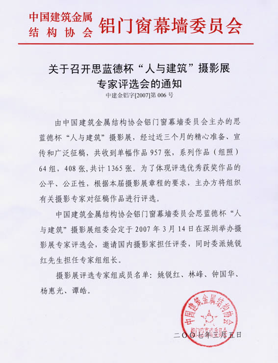 關于召開“人與建筑”攝影展專家評選會的通知