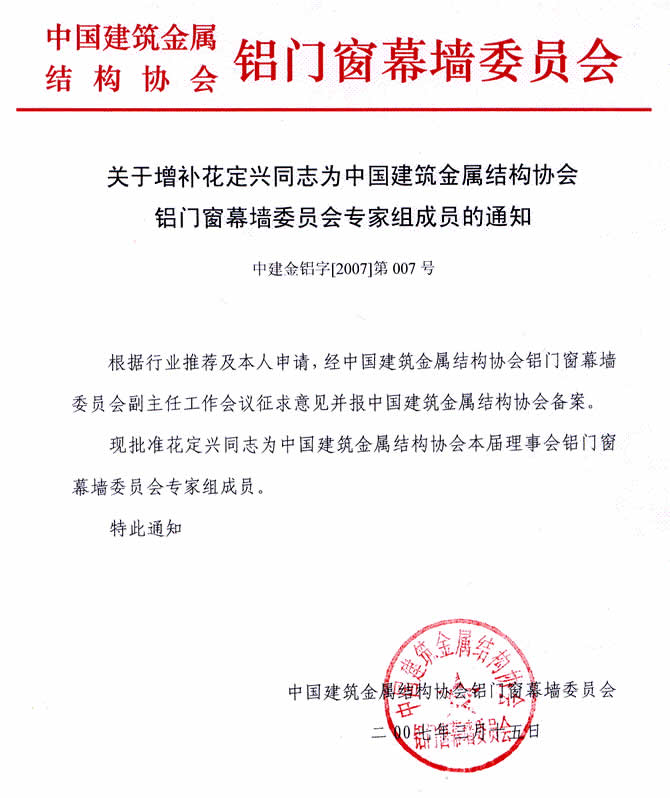 關(guān)于增補花定興為委員會專家組成員的通知