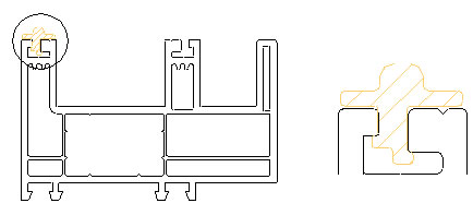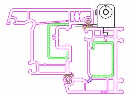 在窗鉸鏈的設計方面,應考慮型材框料安裝鉸鏈基座部位的尺寸,使得固定鉸鏈基座的螺釘能與型腔內部的鋼襯連接,如圖四。由于國內型材系類很多,如圖一所示,兩種型材框料小面的尺寸是不一樣的。在滿足受力的情況下,對于門窗型材安裝五金件的尺寸給予考慮,設計出能滿足用戶需求的不同規格的五金件。