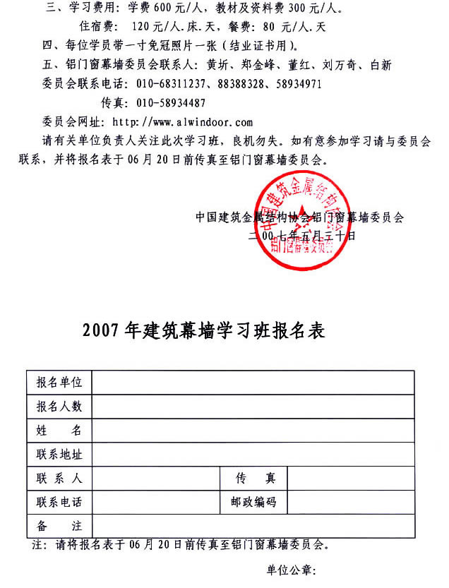 點擊下載2007年建筑幕墻學習班報名表