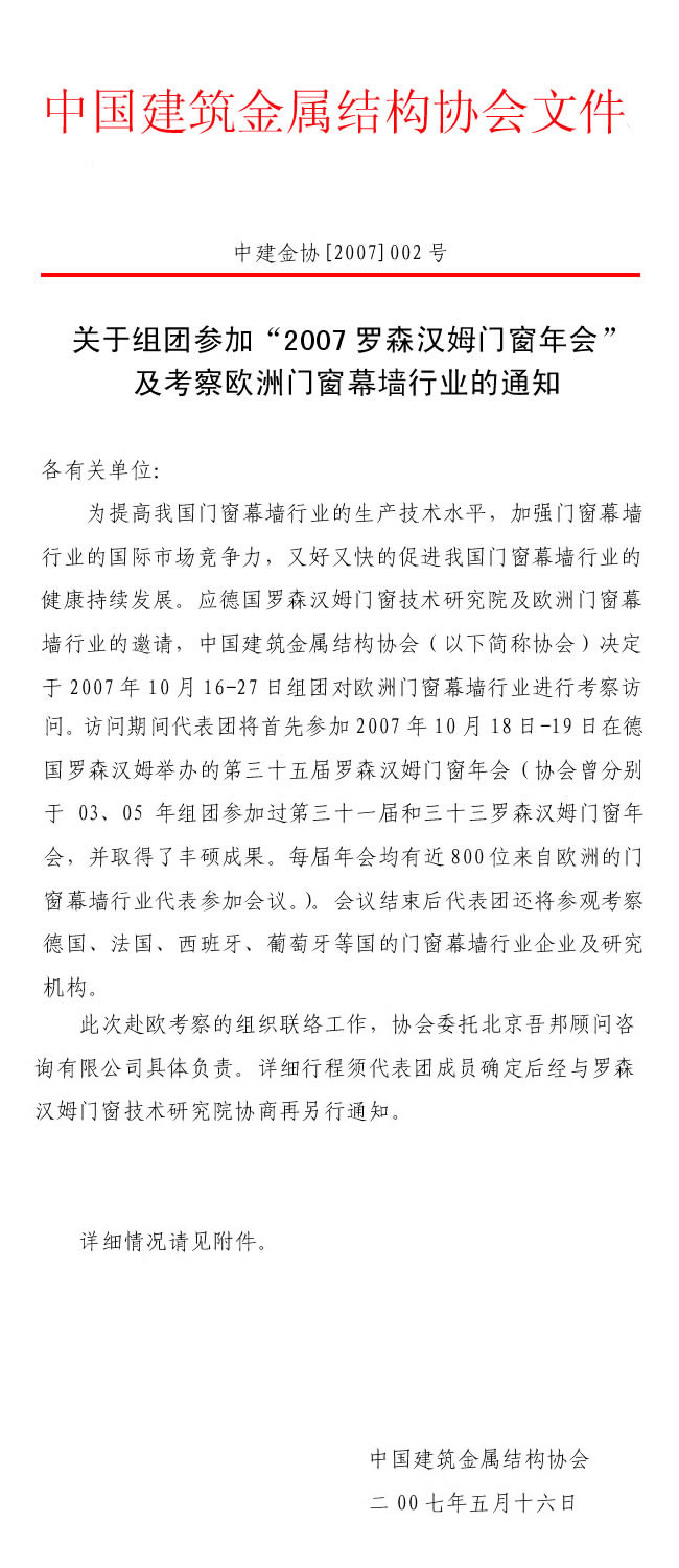 建筑門窗配套件行業(yè)資訊集錦:匯集行業(yè)最新資訊、專家最新技術論文..... 2012年度建筑門窗配套件行業(yè)“用戶首選品牌”調(diào)查活動:為促進建筑門窗配套件行業(yè)健康發(fā)展,提高整個行業(yè)的品牌意識...... 第三屆建筑門窗配套件行業(yè)科技創(chuàng)新論文大賽:第三屆建筑門窗配套件行業(yè)科技創(chuàng)新論文大賽頒獎盛典在廣東省佛山市隆重召開...... 第十屆建筑門窗配套件行業(yè)技術交流會:2011年10月31-日,第十屆建筑門窗配套件行業(yè)技術交流會在北京圓山大酒店順利召開......