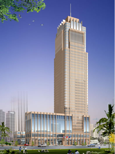 深圳免稅大廈:建筑物高度165米,石材幕墻面積25000m2。