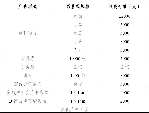 展位及廣告收費標(biāo)準(zhǔn)