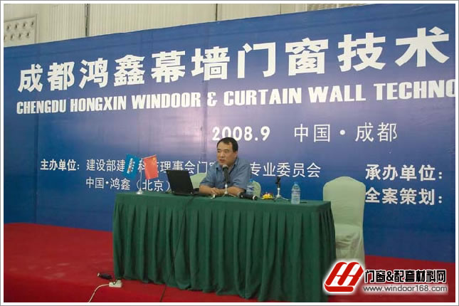 在成都鴻鑫幕墻門窗技術交流研討會,主題:“抗震、節能”,研討會時間:2008年9月4日,研討會地點:成都世紀城新國際會展中心。