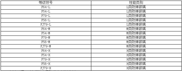 符合本標準要求的各種防彈玻璃可按表1將其所屬等級、類別符號在產品標記中注明 表1。