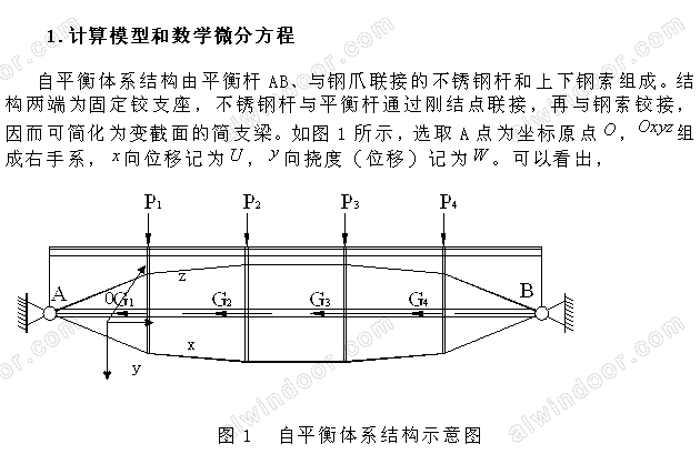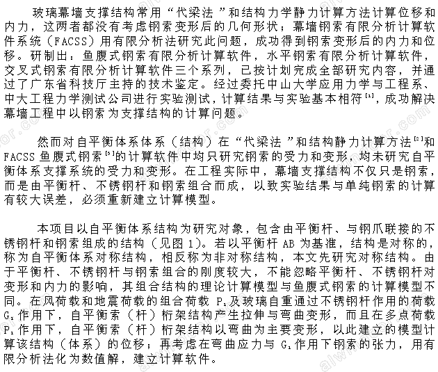 關(guān)鍵詞:自平衡桿索結(jié)構(gòu);位移;內(nèi)力;有限分析法;數(shù)值解;計算軟件。