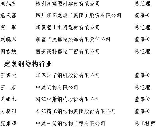• 建筑金屬結構協會第九屆理事會理事候選名單