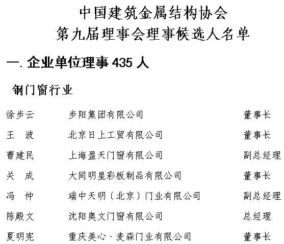 會上中國建筑金屬結構協會給水排水設備分會秘書長華明九先生宣讀《中國建筑金屬結構協會第九屆理事會常務理事候選人名單》