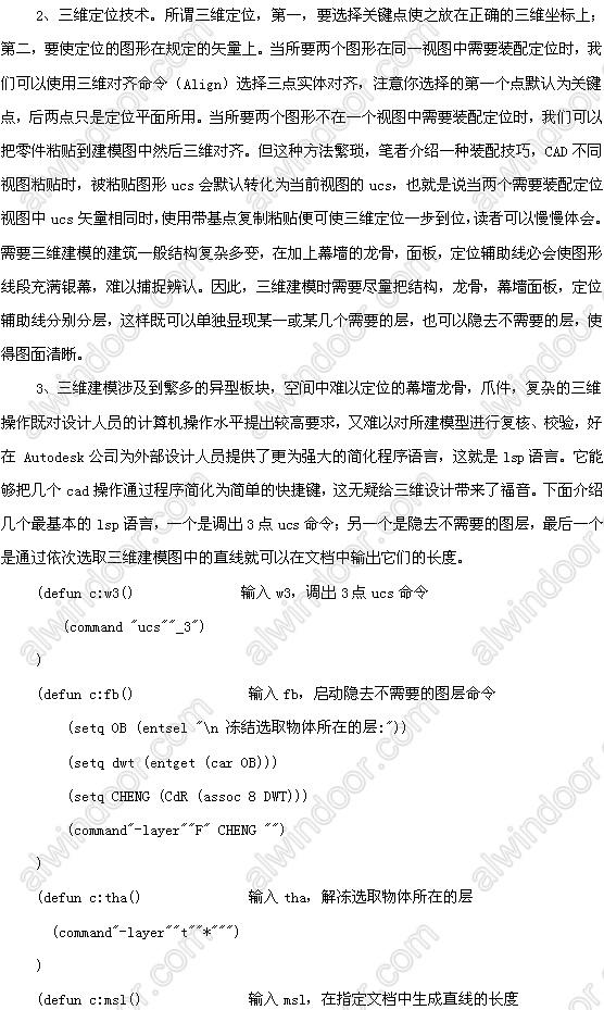 關鍵詞:三維建模 ucs轉換 三維定位 lsp語言