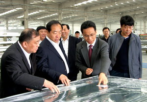 4月21日上午,北京市人大常委會副主任趙鳳山在市人大委員雷德才,順義區人大主任馬庚良、副區長王海臣等領導的陪同下,視察了江河總部基地,江河公司董事長劉載望熱情接待考察組一行。 考察組一行認真聽取了劉董事長關于江河近幾年的經營發展情況以及企業遠景規劃匯報,并參觀了公司業績成果展以及加工生產線。領導們對江河所取得的可喜成績予以了積極評價。 江河公司“植根中國,布局全球”的經營發展戰略,得到了趙鳳山副主任的高度認可,他鼓勵江河要堅持“走出去”的發展思路,做強、做大,早日成為世界頂級幕墻企業。劉載望董事長也表示,江河公司一定不負重托,一如繼往,信心十足,以更優異的業績回報社會。