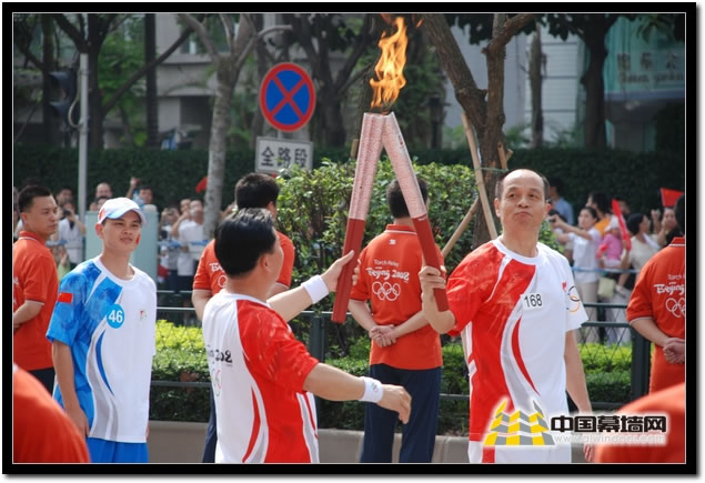 第169棒火炬接力在濱江東路舉行,等我們廠車開(kāi)到那里的時(shí)候,熱情的觀眾早早把沿途圍得水泄不通,很多市民特意穿上大紅的T恤衫,揮舞手中的國(guó)旗、五環(huán)旗,現(xiàn)場(chǎng)氣氛非常熱烈。我們?yōu)檫@次活動(dòng)也做了精心的準(zhǔn)備,都穿著印有“白云化工為奧運(yùn)加油”和奧運(yùn)五環(huán)的T恤衫,在李總即將要跑的200米路段守候著,期待這歷史時(shí)刻的到來(lái)。15:15,“祥云”火炬在護(hù)衛(wèi)車隊(duì)引領(lǐng)下來(lái)到第169棒交接點(diǎn),只見(jiàn)李總手持“祥云”火炬,面帶微笑,神采奕奕的從投放火炬手的車上走下來(lái),并揮手向觀眾示意,沿途市民的激情瞬間被點(diǎn)燃,吶喊聲震耳欲聾,高喊著“中國(guó)加油、奧運(yùn)加油”的口號(hào),現(xiàn)場(chǎng)一片沸騰。李總高舉火炬,和第168棒對(duì)接,當(dāng)兩支火炬相觸的那一刻,現(xiàn)場(chǎng)爆發(fā)出雷鳴般的掌聲和喝彩聲。李總高舉火炬,揮手向沿途的觀眾示意,邁開(kāi)矯健的步伐,跑步前進(jìn)。短短的200米一下子就過(guò)去了,大家依依不舍,目送著“祥云”火炬,繼續(xù)搖旗吶喊。18:18,最后一棒火炬進(jìn)入天河體育中心體育館,在全場(chǎng)數(shù)萬(wàn)觀眾的見(jiàn)證下點(diǎn)燃圣火盆,成功完成了圣火在廣州的傳遞。