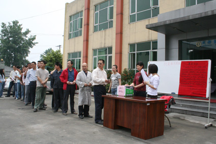 2008年5月14日下午14點正,硅寶公司工會組織全體職工舉行抗震救災捐贈活動。
