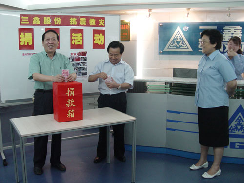 自5月12日四川省汶川縣發生強烈地震后,在三鑫股份公司管理層和廣大員工中引起了強烈震憾,公司一方面組織和號召員工捐款捐物,踴躍支援災區;另一方面了解四川籍員工和承接工程的受損失情況,積極開展抗震救災活動。
