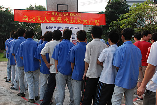 捐款箱前排起了長隊,安泰員工紛紛捐款,向災區人民伸出援助之手
