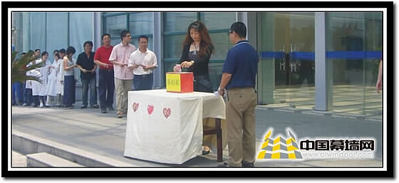 領導帶領大家向災區人民捐款