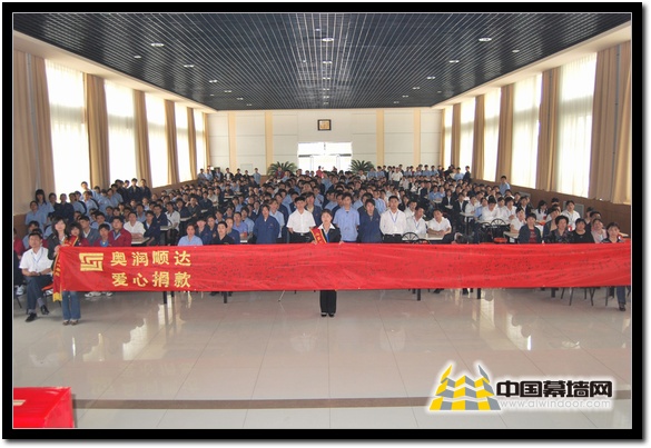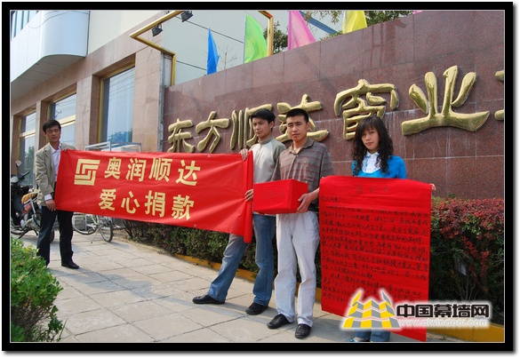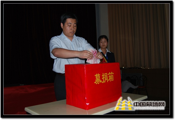 窗業(yè)有限公司員工停工三分鐘,沉痛默哀在四川汶川大地震中遇難的同胞。國(guó)難當(dāng)頭企業(yè)有責(zé)。連日來(lái),該公司把四川受災(zāi)人民的痛苦做為自己的痛苦,積極發(fā)動(dòng)員工捐款獻(xiàn)愛(ài)心。5月15日,公司舉行募捐大會(huì),宣讀獻(xiàn)愛(ài)心倡議,發(fā)出愛(ài)心總動(dòng)員。在不間斷巡回播放的《讓世界充滿愛(ài)》的背景音樂(lè)中,董事長(zhǎng)倪守強(qiáng)帶頭捐款2萬(wàn)元,接著中高層管理,普通員工紛紛走上臺(tái)將錢款投進(jìn)捐款箱,在愛(ài)心橫幅上簽名,據(jù)統(tǒng)計(jì),活動(dòng)當(dāng)場(chǎng)就捐款12萬(wàn)余元。在捐款的同時(shí)員工們還心系全心全意為人民的好總理,聽(tīng)說(shuō)他視察災(zāi)情時(shí)跌倒受了傷,大家精心為總理準(zhǔn)備了一個(gè)裝滿藥品的小藥箱,連同捐款一起送到災(zāi)區(qū)。
