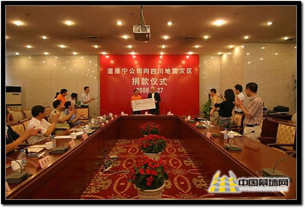 地震發生后第二天,道康寧公司即為四川災區發起了本地員工捐款。在發起捐款的6個工作日內,本地投資的兩家工廠和7個辦事處員工踴躍捐款,公司根據員工捐款總額以1:1的比例匹配,最終在華地區捐額總額達人民幣140萬元(相當于20萬美元)。5月23日道康寧松江工廠通過當地的紅十字會,在5月最后一周道康寧張家港工廠通過當地的中華慈善總會,分別捐出了等額款項。