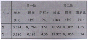 (1)用白噪聲隨機波激振測定試驗?zāi)P脱豖、Y兩個水平方向的動力特性:從試件上各測點所測到的加速度反應(yīng)時程信號經(jīng)頻域變換得到傳遞函數(shù),采用模態(tài)參數(shù)識別方法求出試件的動力特性,即試件結(jié)構(gòu)的前若干階自振頻率和阻尼比。