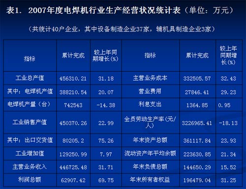 2007年,雖然受國家宏觀調控政策、主要原材料價格居高不下、人力成本上升、市場競爭激烈等因素影響,但國內電焊機產業仍然保持了快速增長的勢頭,取得了不俗的業績,經濟效益顯著。