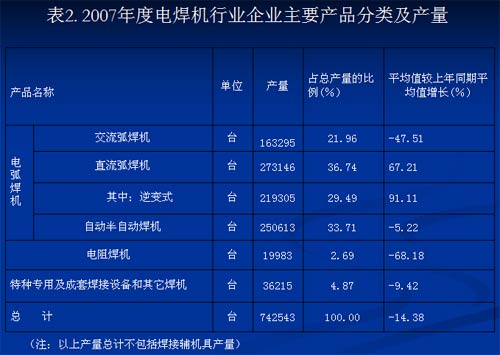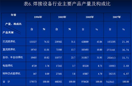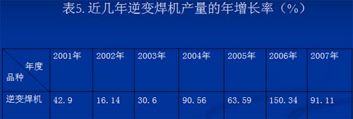 2007年,高技術含量產品的產量均不同程度地大幅度增長,其中逆變式直流弧焊機是突出的代表。