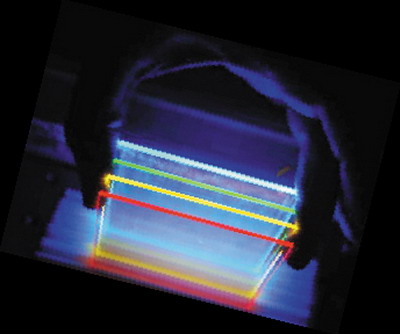 據報道,研發這項技術的是麻省理工學院的科學家,他們按特殊比例混合至少兩種涂料制成一種聚能材料,以吸收各種波長的光線.在玻璃邊緣安裝太陽能電池后,將混合涂料涂在玻璃表面,涂料吸收太陽光后會把光線以不同波長傳輸到安裝在玻璃邊緣的太陽能電池中.麻省理工學院電氣工程師、研究小組負責人馬克·巴爾多說:“涂層可以在大面積物體,如玻璃窗上采集陽光.”