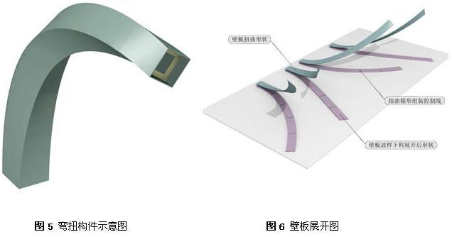 構件彎扭,建筑造型復雜,加工制作難度非常大,通過對構件形成的原理與規律的研究,為工程加工制作的順利進行奠定了基礎,開發了三維特形構件軟件,提高了生產效率,對彎扭構件的加工、制作全過程進行了總結。