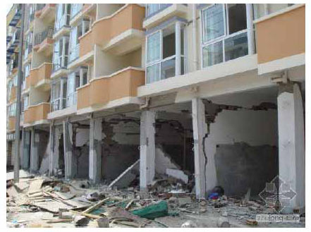 底層破裂,二屋以上窗完好