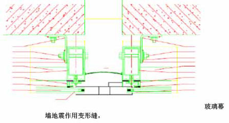 4.2幕墻門窗宜控制平面內兩個方向變形,設制平面內兩個方向的變形設計指標,盡量減少罕遇地震作用下,因框架變形太大,導致玻璃飛散和框架脫落。如下所示