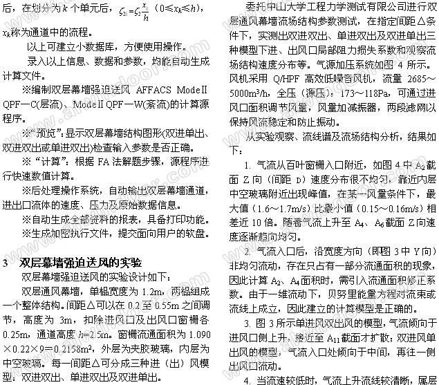 關鍵詞:雙層幕墻;強迫送風;有限分析法;計算模型;實驗。