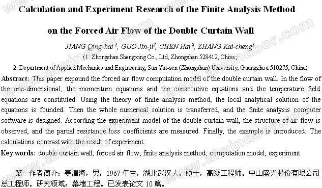 關(guān)鍵詞:雙層幕墻;強迫送風(fēng);有限分析法;計算模型;實驗。