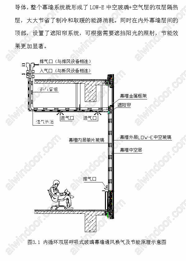 [關鍵詞]單元式內循環雙層呼吸式幕墻、自然通風、熱工計算。