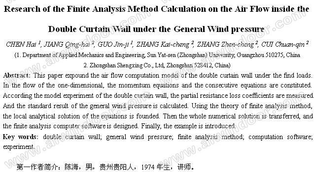 關(guān)鍵詞:雙層通風幕墻;總風壓;有限分析法;計算程序;實驗。