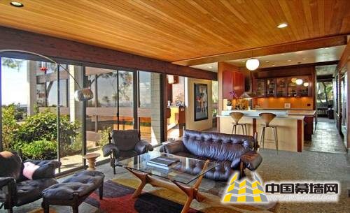 這是位于美國加州洛杉磯的別墅,一幢將60年代的舊屋改建的別墅,建筑師把舊屋的磚墻拆除,換上醒目的玻璃幕墻,在家居的每一個角落都可以通過透明的玻璃與大自然做