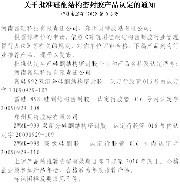 點(diǎn)擊查看>>> 關(guān)于批準(zhǔn)硅酮結(jié)構(gòu)密封膠產(chǎn)品認(rèn)定的通知 中建金膠字[2009]第001號(hào) 文件點(diǎn)擊查看>>> 關(guān)于批準(zhǔn)硅酮結(jié)構(gòu)密封膠產(chǎn)品認(rèn)定的通知 中建金膠字[2009]第006號(hào) 文件點(diǎn)擊查看>>> 關(guān)于批準(zhǔn)硅酮結(jié)構(gòu)密封膠產(chǎn)品認(rèn)定的通知 中建金膠字[2009]第007號(hào) 文件點(diǎn)擊查看>>> 關(guān)于批準(zhǔn)硅酮結(jié)構(gòu)密封膠產(chǎn)品認(rèn)定的通知 中建金膠字[2009]第012號(hào) 文件點(diǎn)擊查看>>> 關(guān)于批準(zhǔn)硅酮結(jié)構(gòu)密封膠產(chǎn)品認(rèn)定的通知 中建金膠字[2009]第014號(hào) 文件點(diǎn)擊查看>>> 關(guān)于批準(zhǔn)硅酮結(jié)構(gòu)密封膠產(chǎn)品認(rèn)定的通知 中建金膠字[2009]第016號(hào) 文件